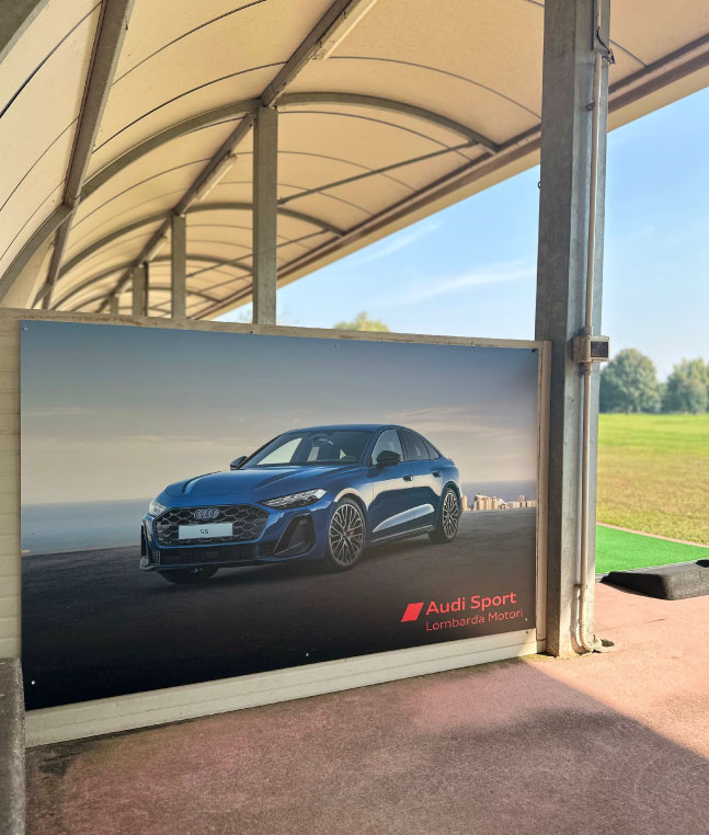 Attraverso la presenza dei nostri pannelli brandizzati Audi, abbiamo voluto instaurare un presidio elegante e discreto in un luogo che incarna appieno la filosofia del marchio: equilibrio, raffinatezza e performance. La collaborazione con il Golf Club Monza non nasce da finalità commerciali, ma dal desiderio di valorizzare il territorio e di rafforzare il legame con una comunità che condivide la stessa attenzione per la qualità e lo stile.